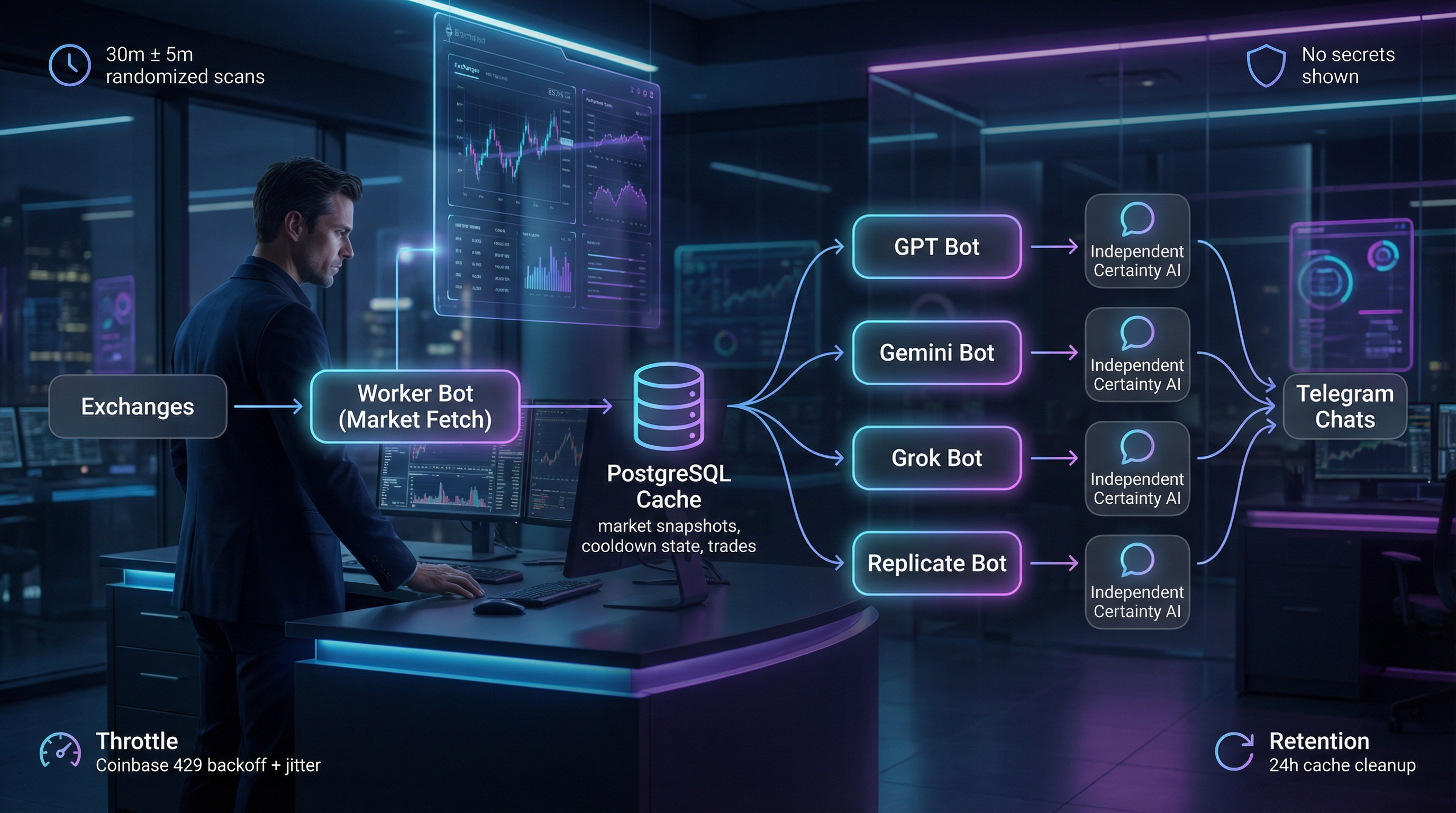 Each model is granted absolute autonomy over its technical analysis. Using our proprietary quantitative pipeline, they ingest live market data, calculate confluences, determine risk parameters, and execute trades in real-time.